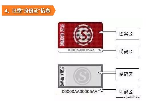 【25】正规灭火器上通常会有两张贴纸标志,其中一张为红黑色覆膜的,一张为黑白色纸质的,这两张都是灭火器的“身份证”,其中红黑色覆膜的是“身份证”的正本,由灭火器终身携带;黑白色纸质的是副本,是“身份证”的备份。“身份证”只有表层的塑料膜可以撕下来,因而无法被转移到别的灭火器上。