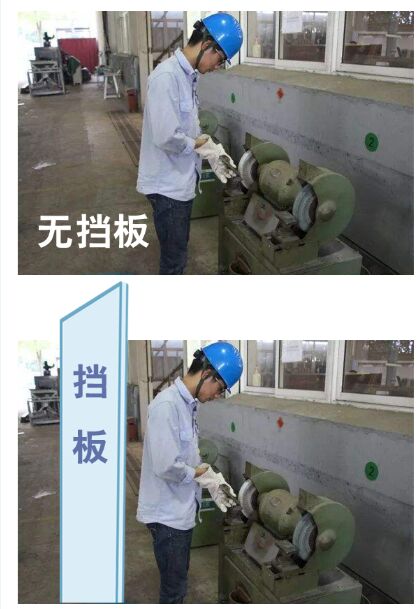 【18】砂轮机应安置在独立操作室内。如无独立操作室,则应在正面设置一个不小于1.8m的防护挡板。