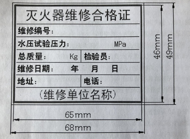 【16】每具维修出厂检验合格的灭火器都应贴有维修合格证。合格证的内容、格式和尺寸应符合下图。