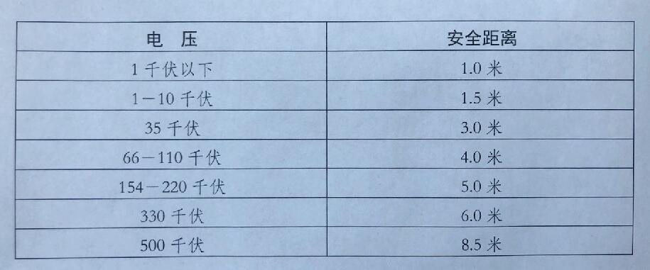 | 【32】 架空电力线路保护区,是为了保证已建架空电力线路的安全运行和保障人民生活的正常供电而必须设置的安全区域。各级电压导线边线在计算导线最大风偏情况下,距建筑物的水平安全距离如下:(《细则》第五条) |